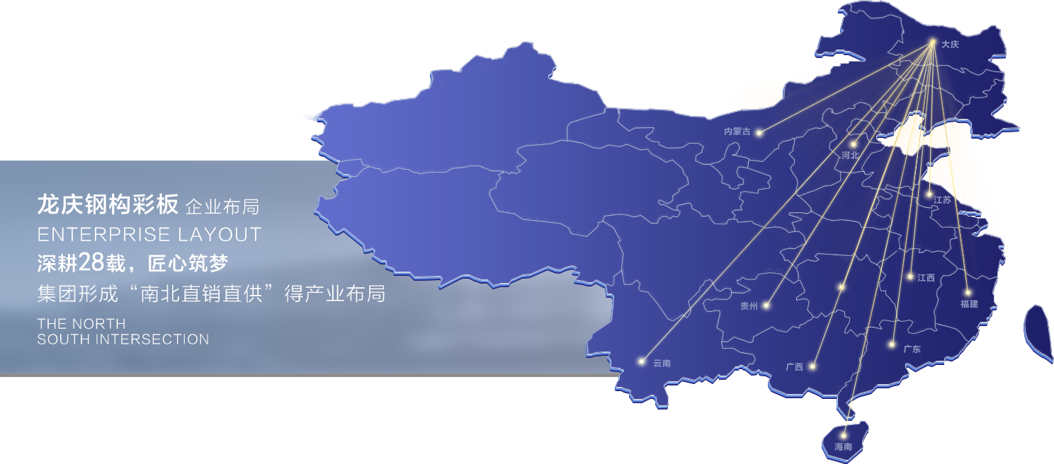 憑借豐富的鋼結(jié)構(gòu)系統(tǒng)材料生產(chǎn)、銷售、施工、設(shè)計(jì)及服務(wù)的成功經(jīng)驗(yàn),龍慶鋼構(gòu)業(yè)務(wù)版圖囊括了東北三省以及內(nèi)蒙、海南,成功服務(wù)國(guó)內(nèi)外數(shù)百家企業(yè),總建筑面積已超過(guò)八千萬(wàn)平米。